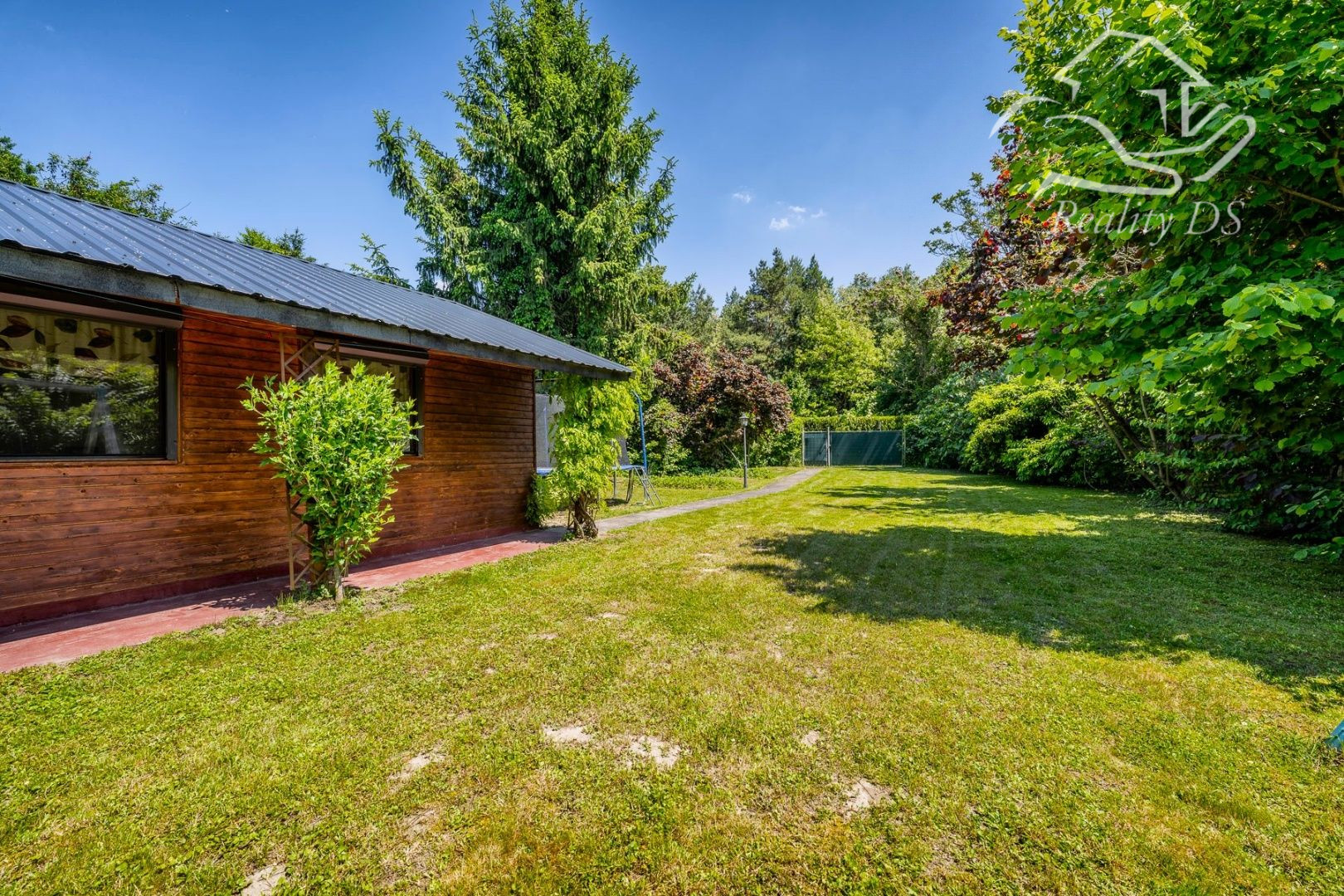 Pozemok je rovinatý, upravený, s výsadbou trávnika a lemovaný stromami, ktoré poskytujú príjemný tieň a súkromie.