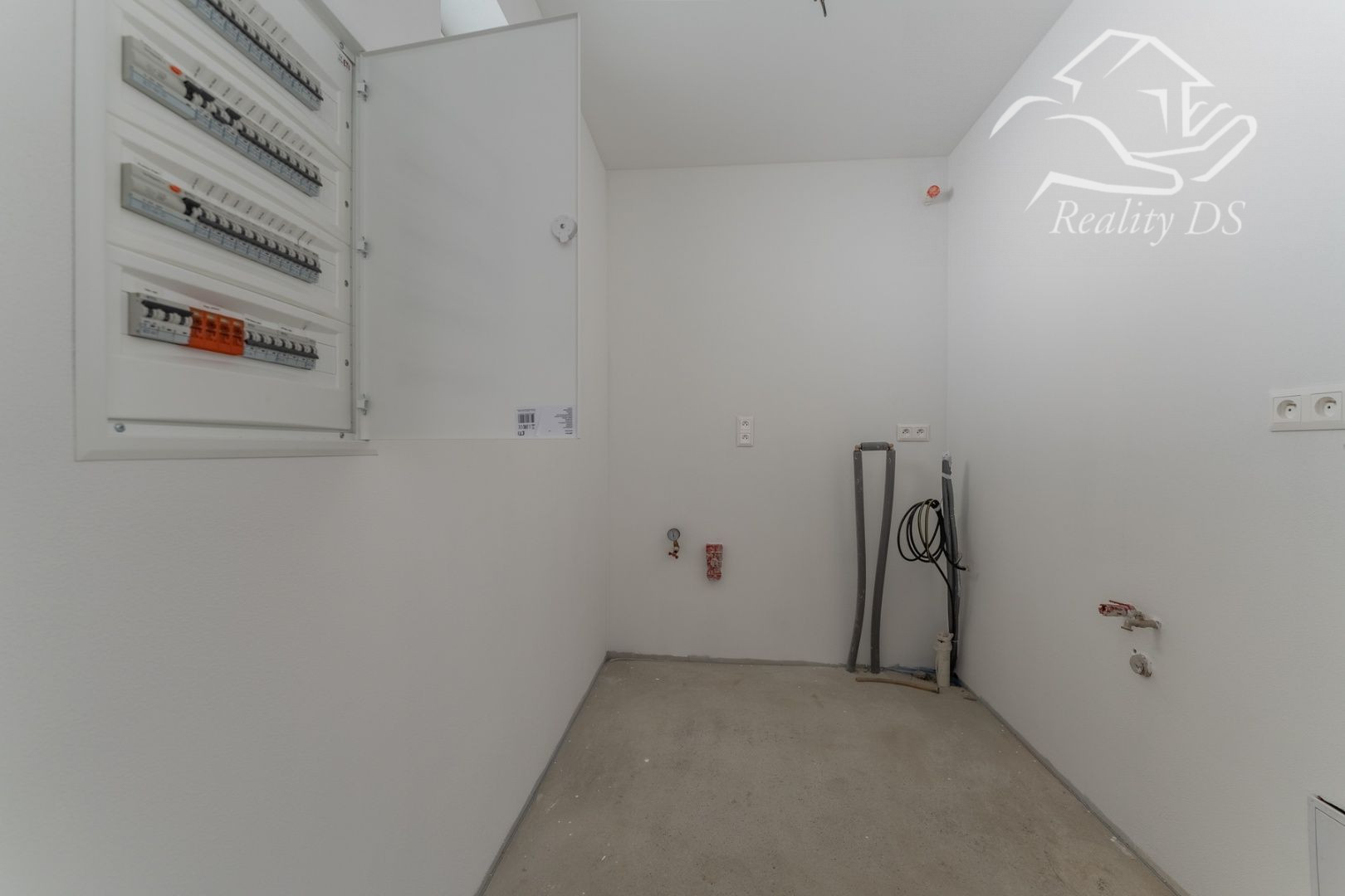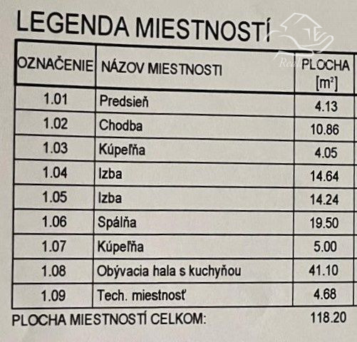 INTERIÉR: V dome je predpríprava pre videovrátnika s vonkajším kamerovým systémom, ďalej kompletná príprava pre alarm, klimatizáciu, internet, TV. Príprava pre centrálny vysavač na troch miestach v podlahe. V kuchyni je samostatná príprava vody pre chladničku. V technickej miestnosti je príprava pre sušičku, automatickú pračku, rozdelovač podlahového kúrenia, zmekčovač vody. V dome sú dve kúpeľne (z toho spáľňa je vybavená tiež vlastnou kúpeľňou), vybavené elektrickou prípravou pre WC+bidet (2 v 1), ďalej príprava pre umyvadlo, sprchovací kút alebo vaňu. Samostatné WC pre hostí s elektrickou prípravou pre WC+bidet (2 v 1). V cene hotové kvalitné laminátové parkety v izbách. Na chodbe, v kuchyni a technickej miestnosti, dlažba. Veľmi pekné interiérové dvere so zárubňou. Dom sa predáva bez kuchynskej linky a bez vybavenia kúpeľne. Po kúpe nehnuteľnosti možnosť dohody na dokončení kúpeľne do štandardu s majiteľom.