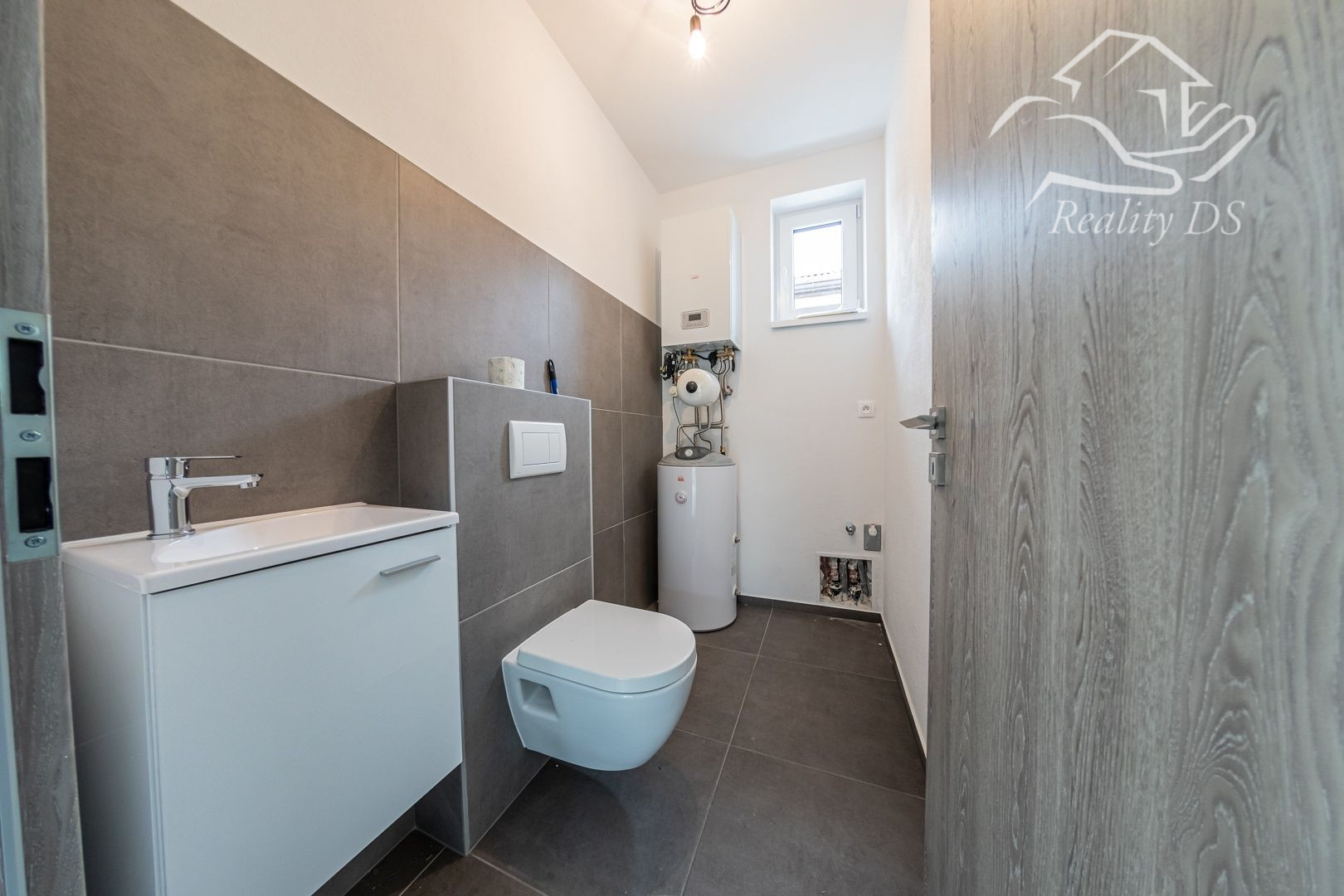 Kúpeľňa je vybavená klasickou vaňou, sprchovacím kútom, toaletou, umyvadlom so skrinkou, veľkým oknom na odvetranie. Centrálny termostat na chodbe, v každej izbe príprava pre internet, TV, alarm, klimatizáciu.