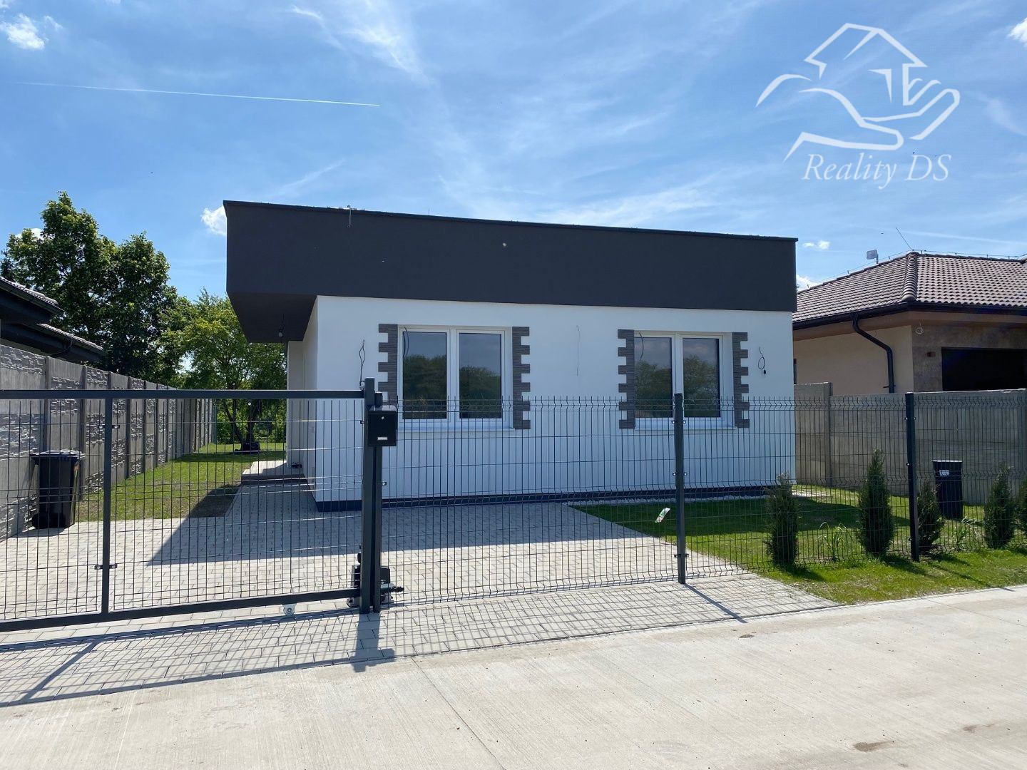 RK RealityDS Vám ponúka na predaj samostatne stojaci moderný jednopodlažný 3 izbový rodinný dom typu bungalov, s plochou vyspádovanou strechou,terasou do záhrady, postavený na oplotenom pozemku, s rozlohou 445 m2. Dom je situovaný v novovybudovanej slepej uličke, v zástavbe nových rodinných domov v obci Báč.