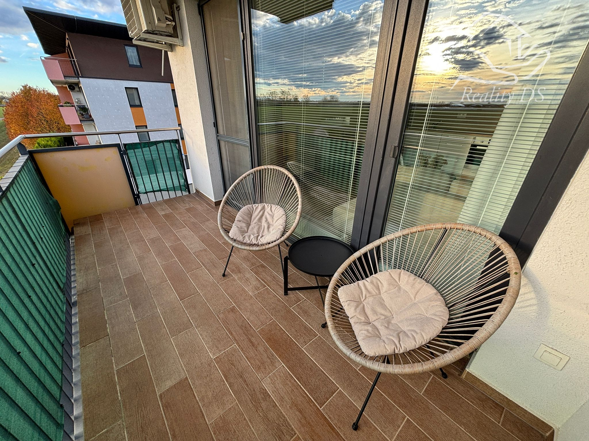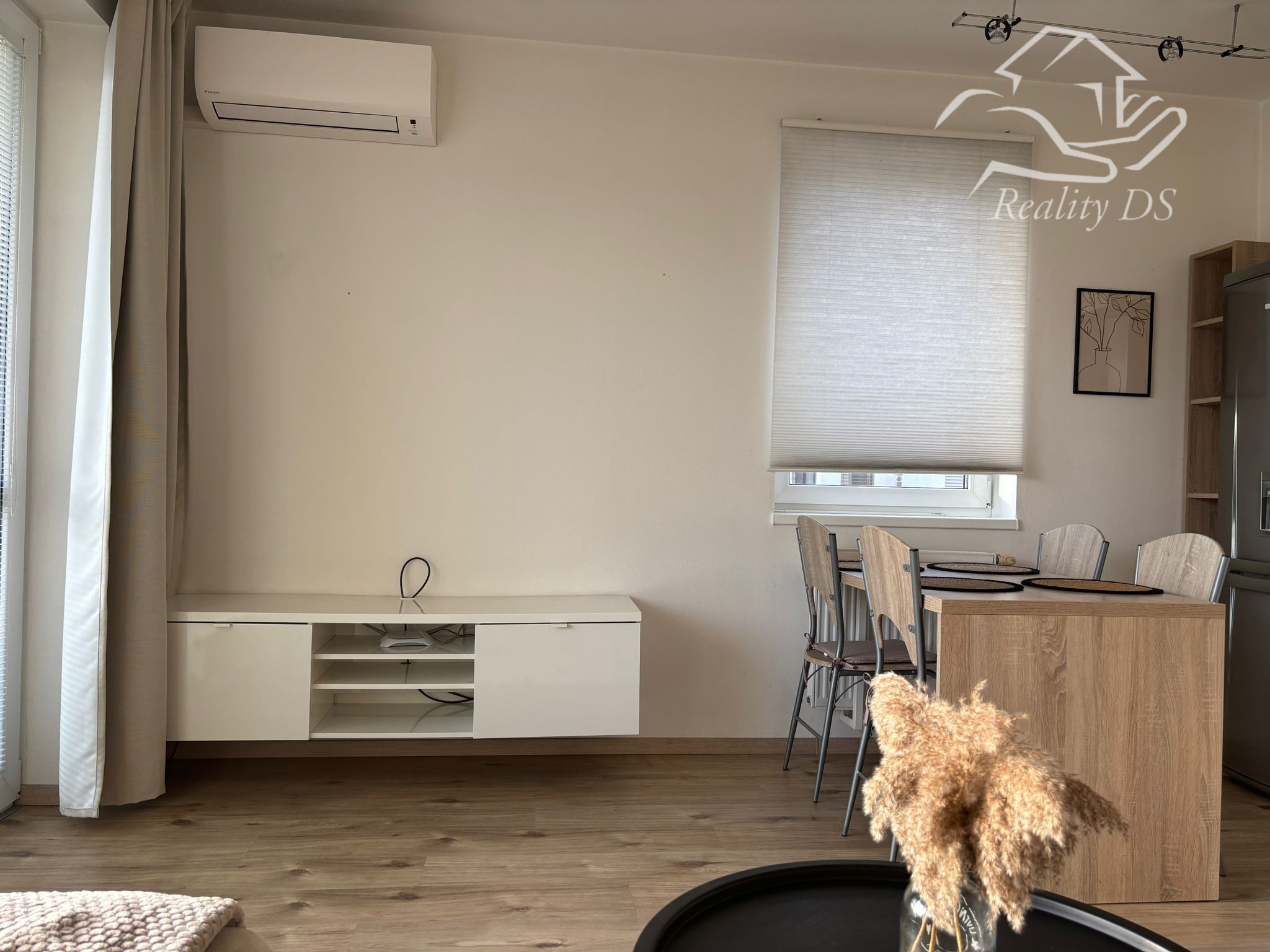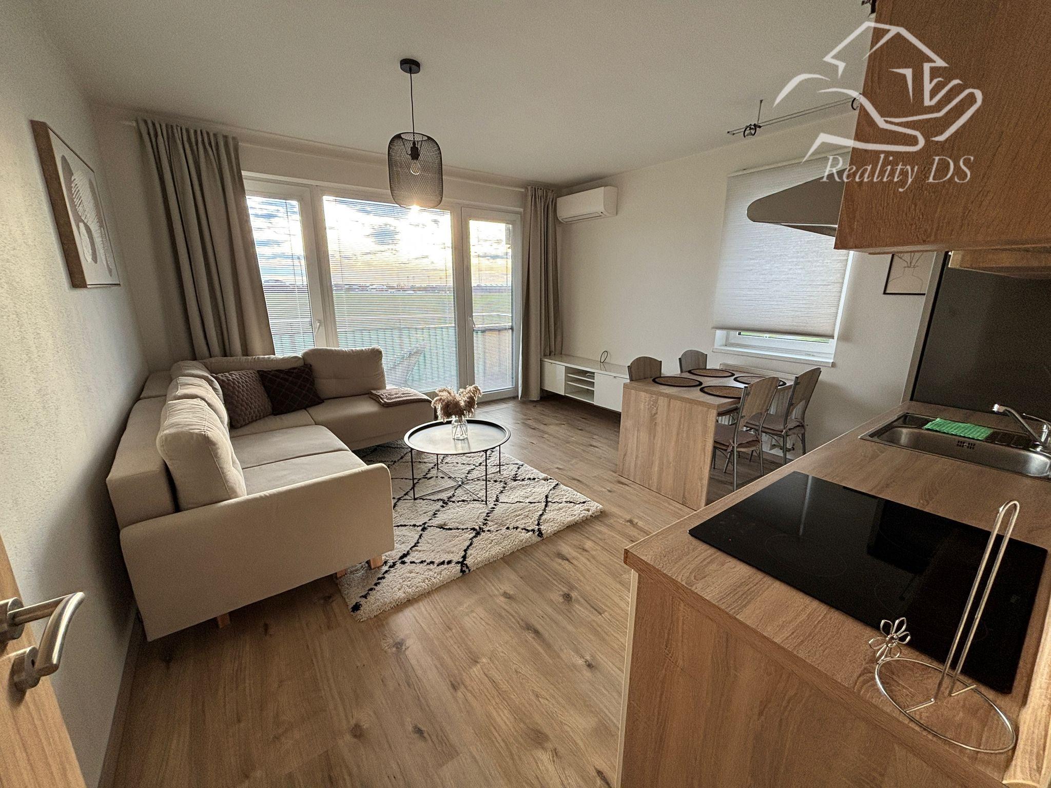 Samotný byt sa nachádza na druhom poschodí bytového domu, má rozlohu 41,44m2 + balkon vo výmere 7,47m2. Byt tvoria dve izby s príslušenstvom (predsieň, kuchyňa, kúpeľňa spolu s toaletou). Prenajíma sa kompletne zariadený: pračka, posteľ, skriňa, nová kuchynská linka, chladnička, el.rúra, sklokeramická doska, sedacia súprava s úložným priestorom, konferenčný stôl, jedálenský stôl so 4 stoličkami, skrinka na TV, pripojka TV pre DIGI, Magio Sat, UPC, v cene internet, klimatizácia, jedno parkovacie státie k bytu. Byt má samostatné plynové kúrenie a je vybavený klimatizáciou.