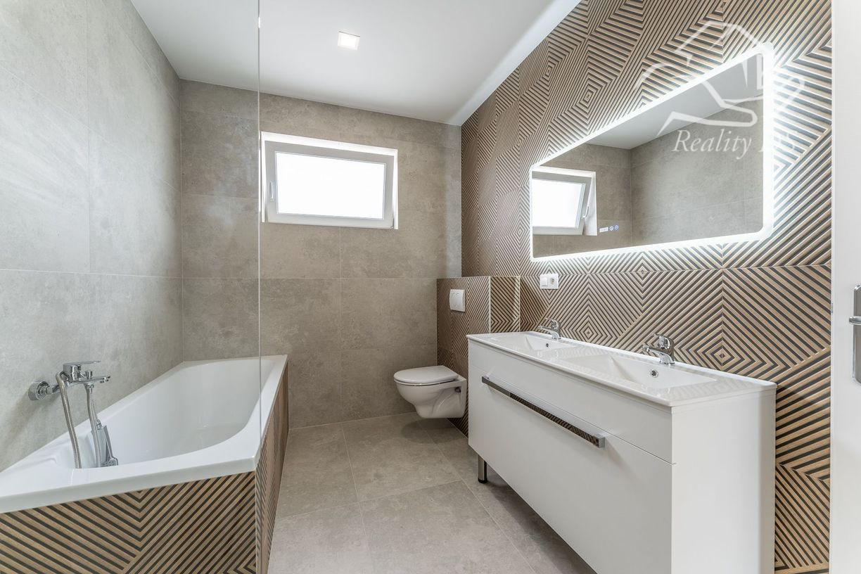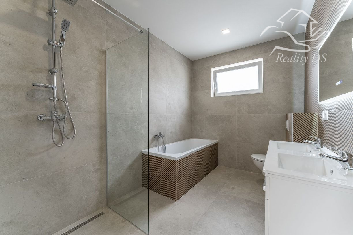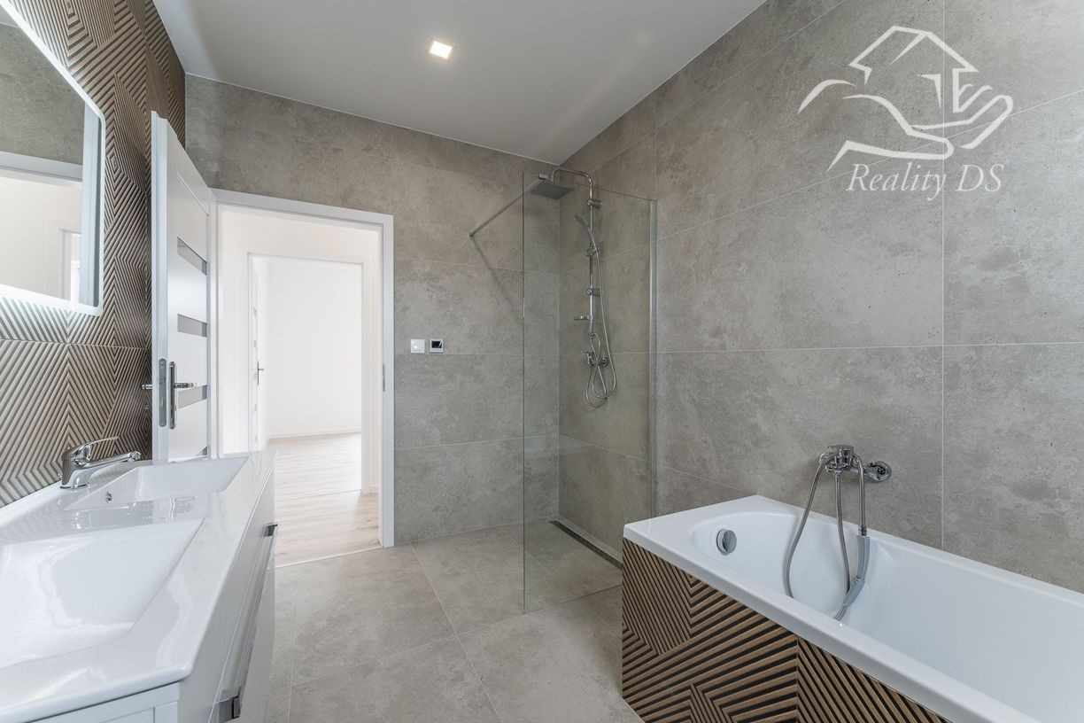 - Kúpeľňa s vaňou, sprchovým kútom a dvojumývadlom
