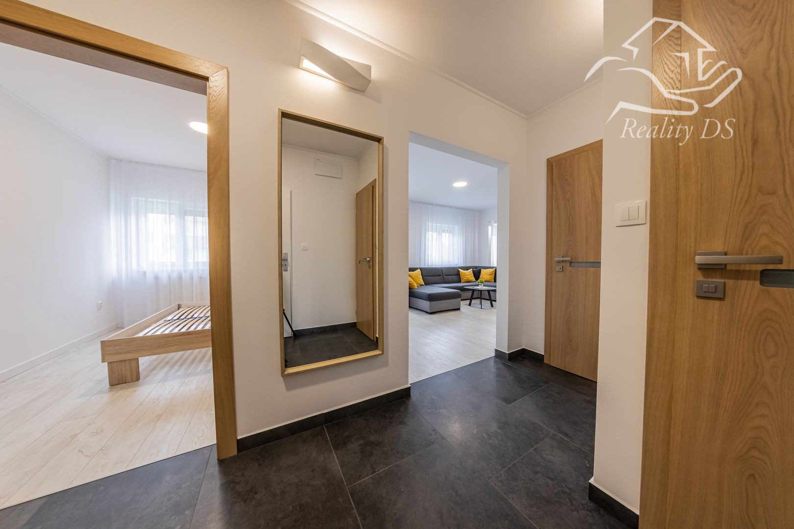 Byt sa prenajíma zariadený ako na fotografiách. Vstupná chodba s odkladacím priestorom na topánky a bundy a krásnym veľkým zrkadlom. Obývačka je zariadená veľkou pohodlnou rozkladacou pohovkou, konferenčným stolíkom a televízorom. Kuchyňa je vybavená novou kuchynskou linkou so vstavanými spotrebičmi vrátane umývačky riadu, indukčnej platne, elektrickej rúry, mikrovlnky a digestora. V jedálenskej časti sa nachádza kvalitný mramorový stôl s pohodlnými čalúnenými stoličkami. V špajzi nájdete chladničku a práčku, pričom je tam dostatok priestoru na police. V jednej z izieb sa nachádza pohodlná posteľ, druhá izba je vybavená priestranným roldorom, poskytujúcim dostatok úložného priestoru. WC je vybavené svetelným senzorom pre maximálne pohodlie. Kúpeľňa disponuje vaňou a umývadlom.