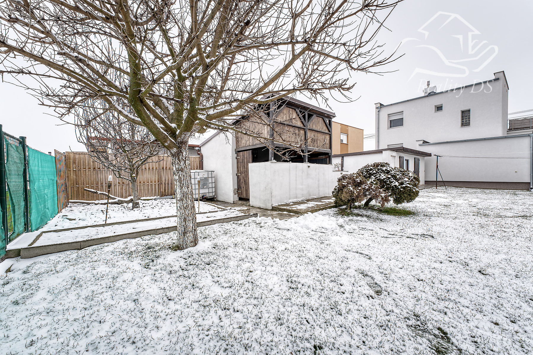 Pozemok o výmere 600 m² je upravený a poskytuje príjemné súkromie. Súčasťou je okrasná záhrada, anglický trávnik, altánok so sedením, ohnisko so sedením, ako aj praktické úložné priestory na drevo a náradie. Parkovanie je zabezpečené garážou a tromi vonkajšími parkovacími miestami.