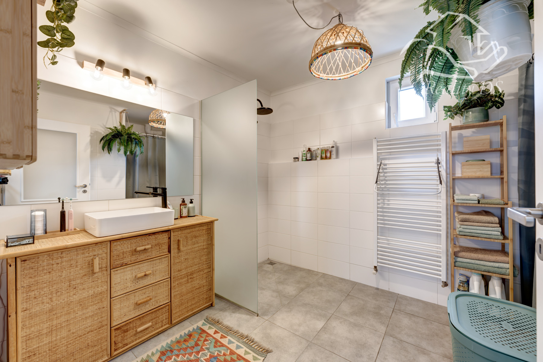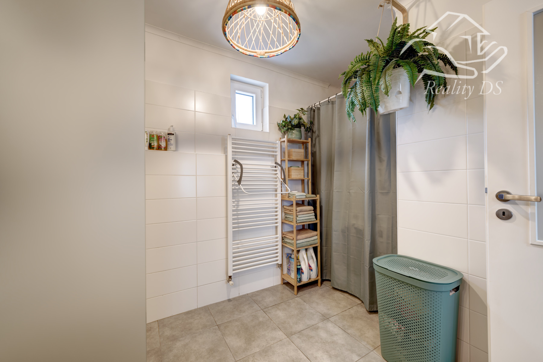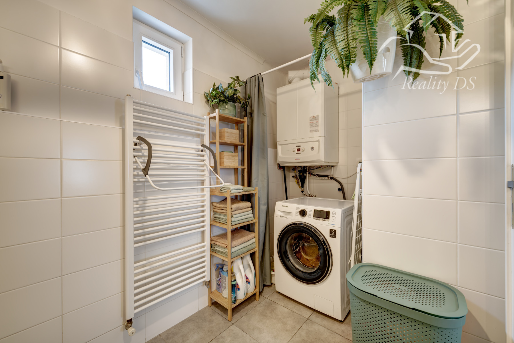 - kúpeľňa so sprchovacím kútom, technický kútik pre kondenzačný kotol so 40L zásobníkom vody, zn. Immergas, prípojka pre automatickú pračku, umyvadlo, okno na odvetranie, samostatné WC,