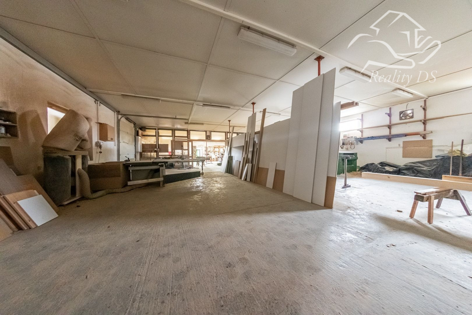 - murovaná vykurovaná stolárska dieľňa, o rozlohe 28x13m, v zadnej časti stavby je samostatný sklad reziva trojuholníkového tvaru, s rozlohou cca 40 m2 a s prístrešok pozdĺž dieľne , spolu zastavaná plocha 493 m2. Dve tretiny dieľne vykurované, strecha je plechová, povala izolovaná 20 cm minerálnou vlnou . Dieľňa je vybavená dvomi bránami na DO, výška 3,10m.